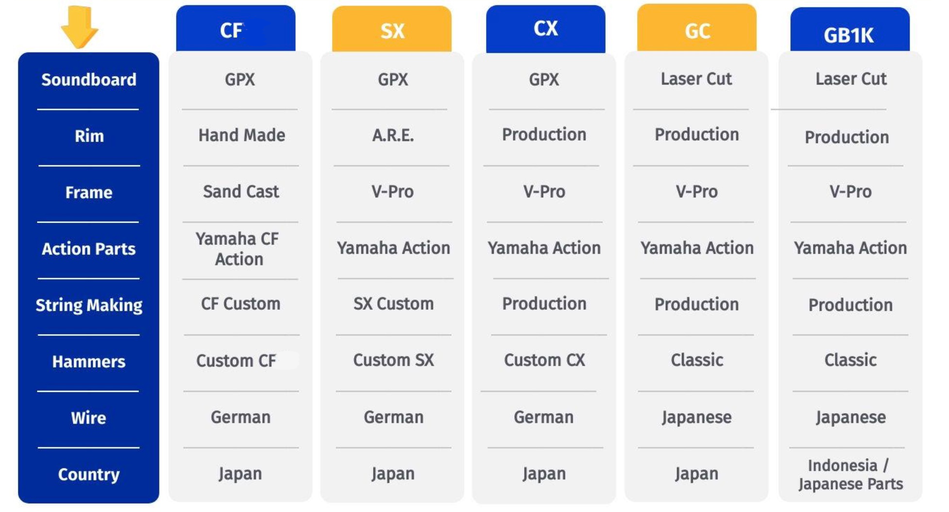 A.R.E. is used in the SX-Series of Yamaha grand pianos, which are often owned by professionals and professors.